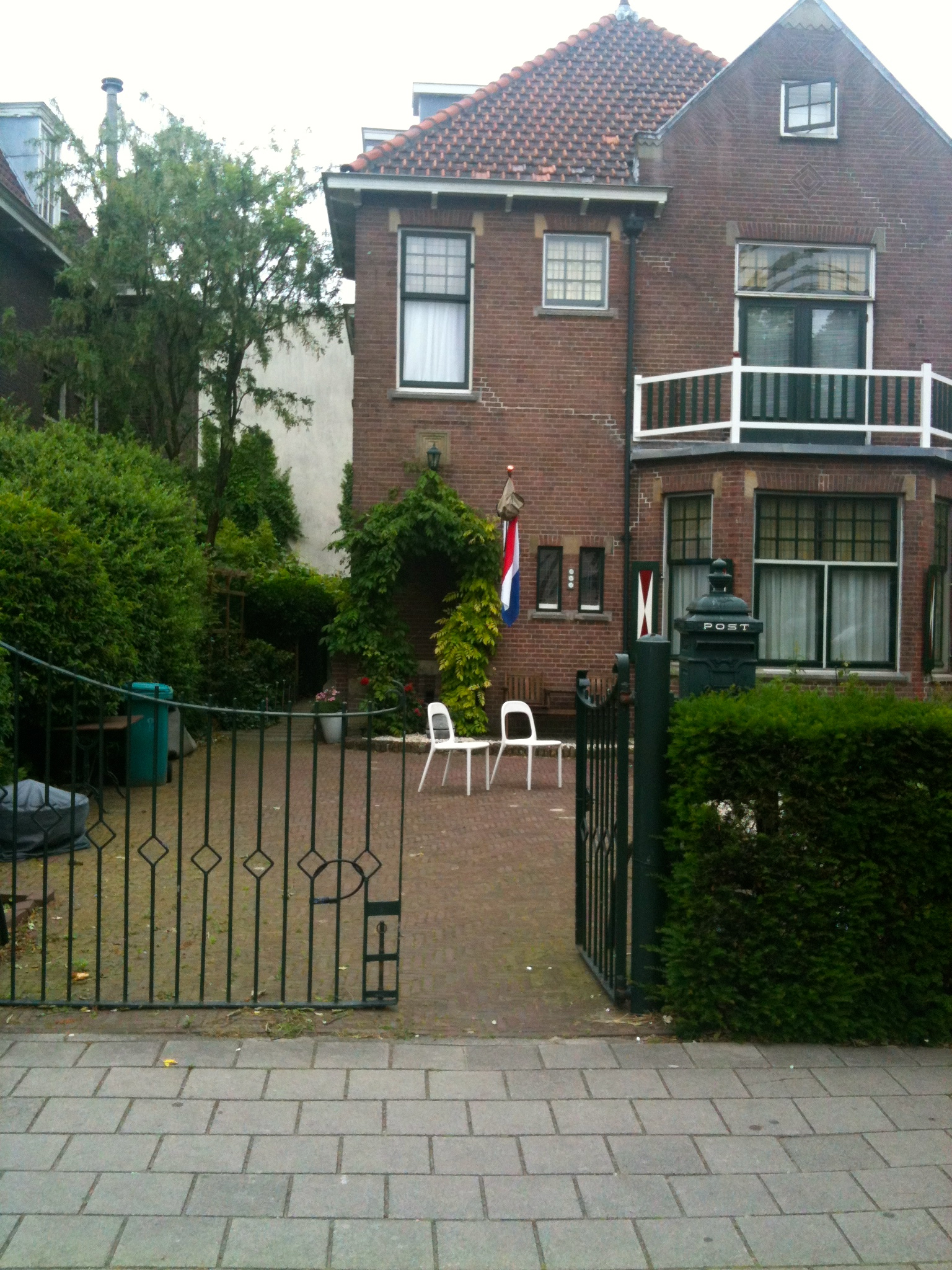 In Olanda molte case hanno il sostegno per l’ asta della bandiera sula facciata. Ora, in tutto il delirio bandieristico e decorativo degli europei a molti potrà essere sfuggito, ma a fine giugno ci sono questo tipo di bandiere appese su alcune case: con uno zainetto scolastico.